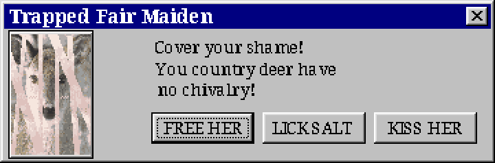 I’m caught between two damsels, for I have given my oath to come back for the petrified lass from across the river. Despite the hag’s true and crude visage, if she could change her appearance on a whim to a more appealing presentation, then I could woo her and win all the salt I crave for. But first, I must ask of the petrified maiden over yonder.