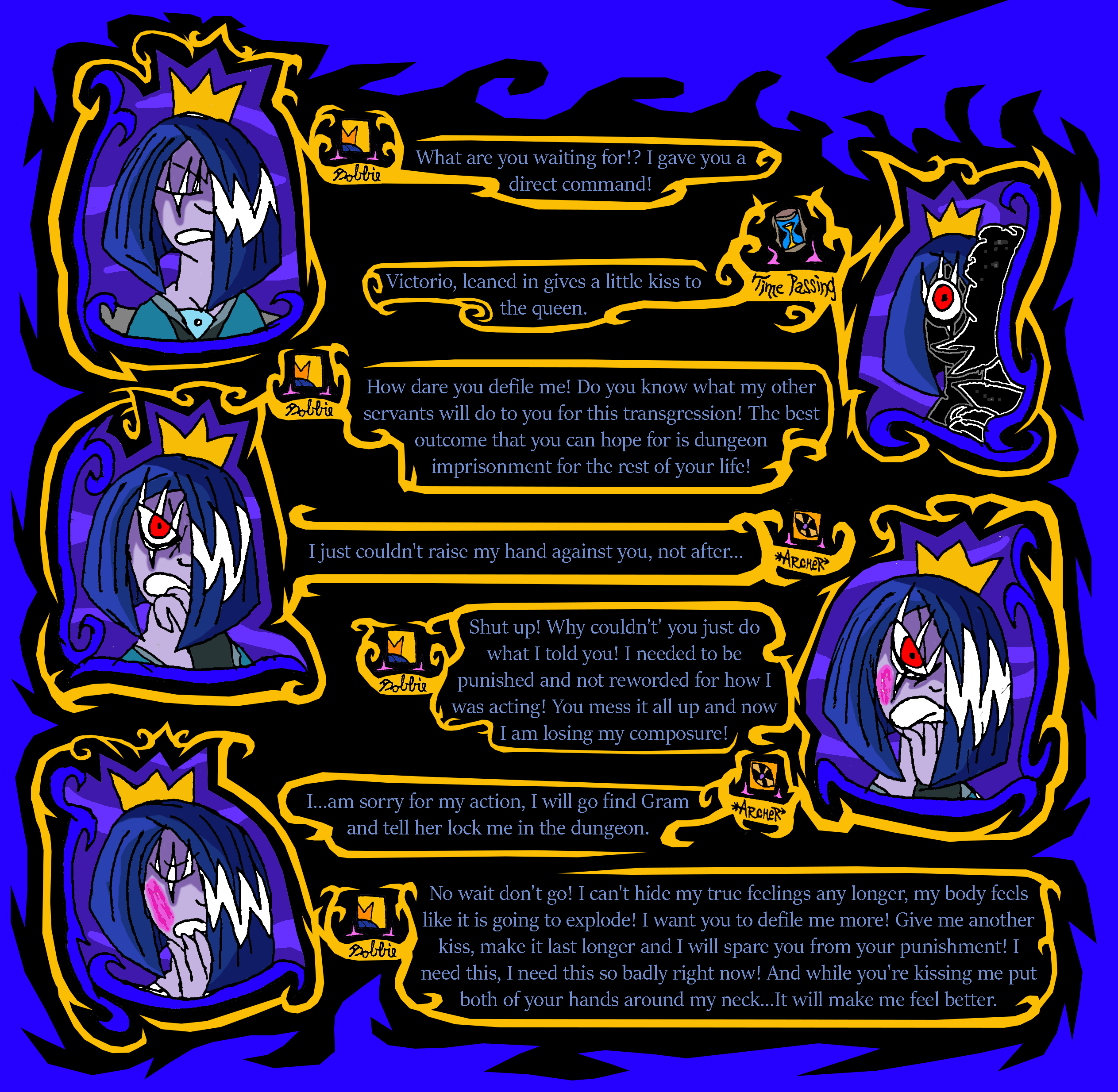 Does that mean she will punish him if he doesn't do intimate things with her? Because I don't think that's the kind of ruler she wants to be.