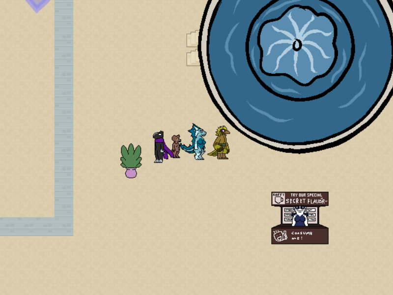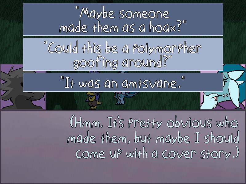 Apparently the game devs took advantage of a small bug in the line-break code to make it go off-screen. Good thing it never got fixed! why does siphon suddenly look annoyed?