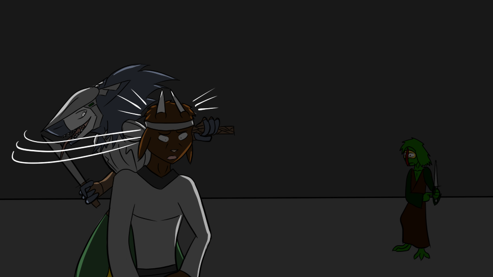 Buuuuuuuuuuuuut, we still need a time-jump, and an excuse for the orphan nevrean and sergal to spend years in a mountain retreat honing psychic powers and an unorthodox but incredibly lethal fighting style, respectively. So, I guess by DM Fiat fate you'll just have to die here or kill all your friends and doom your family/town/life forever.