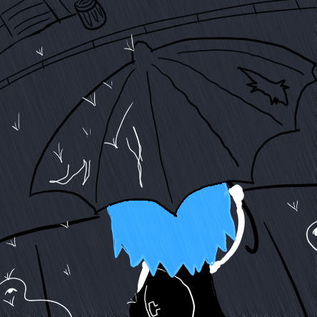 You turn your umbrella around so the water doesn't pour on your face anymore. You don't take the bus because your home is only a couple blocks from school.
