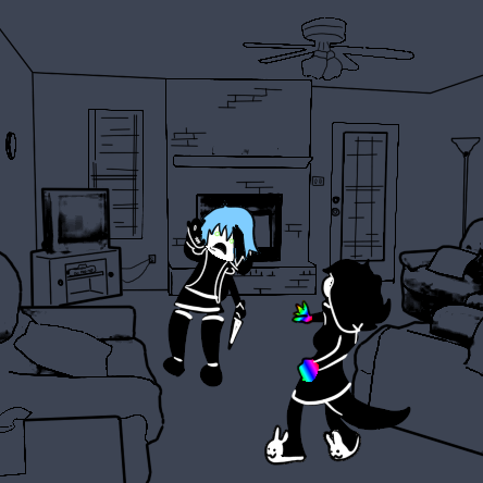After the knock on the door, it only takes a few seconds for it to open. Inside the door stands a tall furry touched with grey hair and an eye patch, and a little girl. I lower my cigarette slowly now that I have their attention.