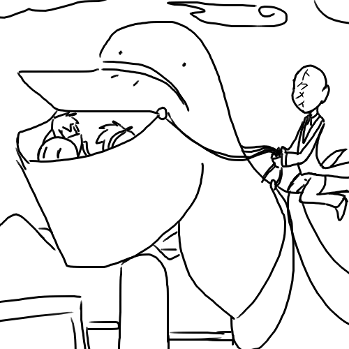 "About being in a giant avian's mouth while high in the air at high speed, and the orb keeps sugges-"