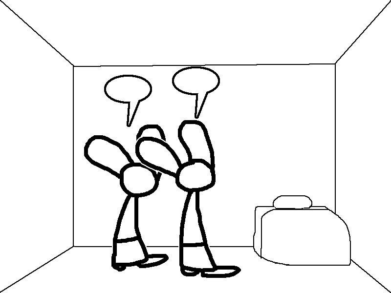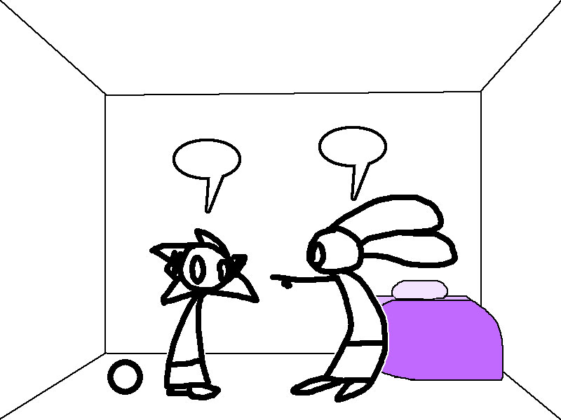 Prop "Solid Wall" reverted to default. Actor "Bunny A" species set to "Cat". Actor "Bunny A" gender randomized (Female). Actor "Bunny B" unmuted. Forced action "hug" ended. >Bunny B: "Oh god!" >Bunny A: "What happened?!" >Bunny B: "I couldn't talk all of a sudden! It's like -- oh god, what happened?! You're a cat!" >Bunny A: "What? I'm a -- I'M A CAT?!"