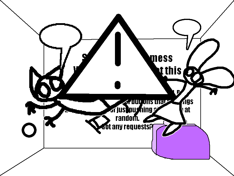 PRINT (east_wall) "We are not ghosts. Or demons. We are... kind of in control of your world. Basically we have all sorts of buttons that do things and we are kind of just pushing all of them at random. Got any requests?"