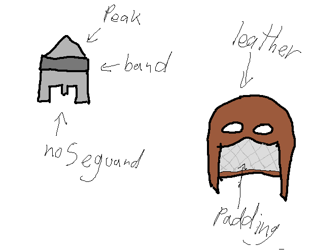 The hood-thingy is arguably even more important - it should be strong leather, and heavily padded. A blow to the head is bad even through a helm. To prevent or reduce such problems as concussions, the padding must be thick - but not so thick as to overheat the brain. Everything else is, I think, self explanatory.