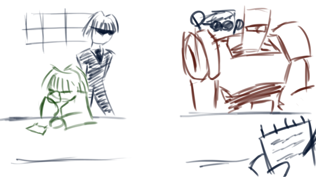 On the original plan, the suggestions would control both characters at the same time, something more like a cooperative story, or a yarn. What it actually happened turned to be much more interesting, I say :3