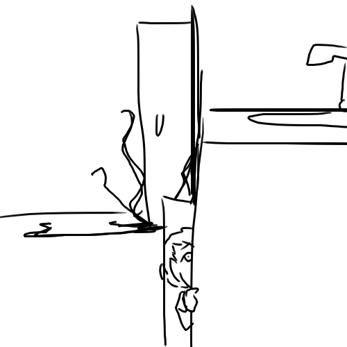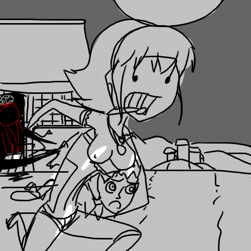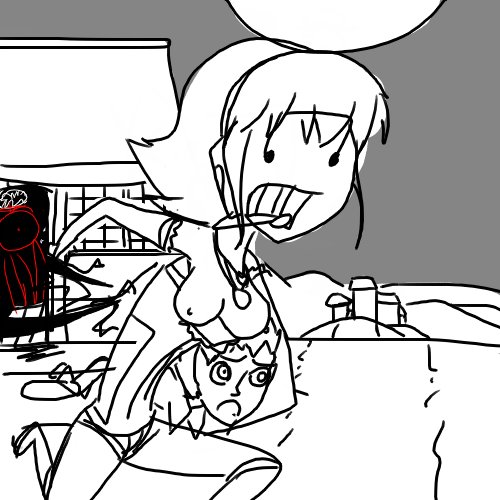 Oh, there's some kind of spider demon thing that was in the bathroom upstairs. We got Naomi to punch it. It didn't die.