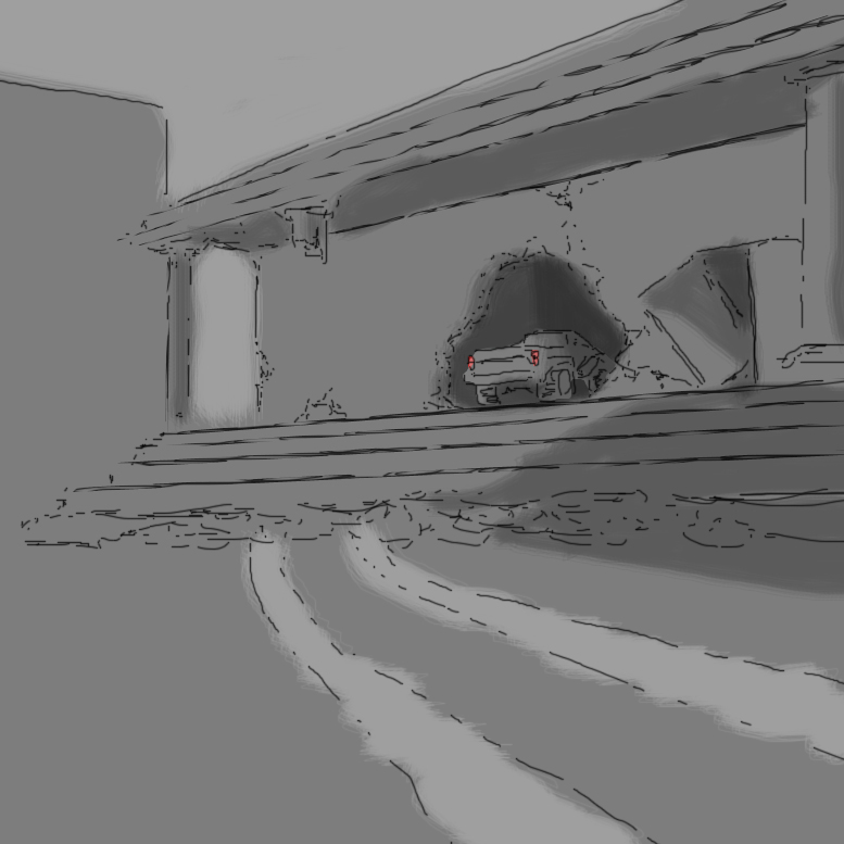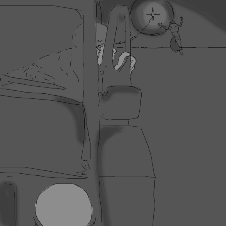 >"Could help. I can nearly feel something about to break. Me and you together - the jeep, I mean... that could do it. Wouldn't want it getting stuck in here. Not even sure it'd get through the front door."