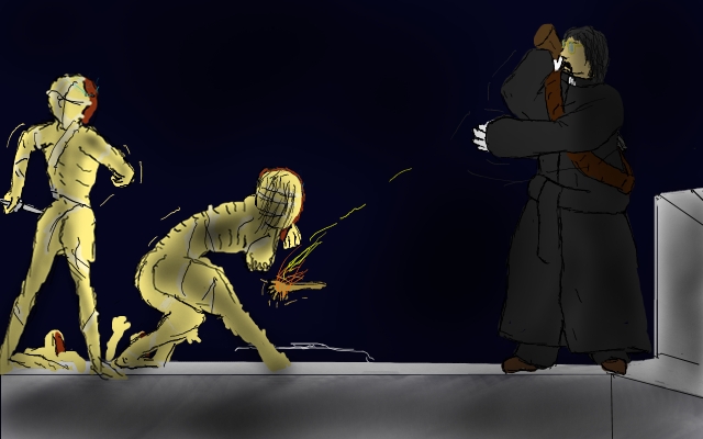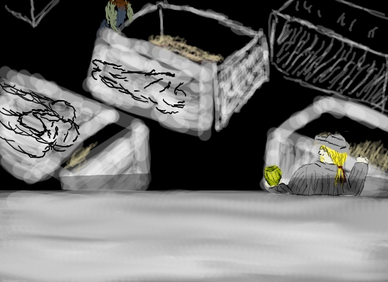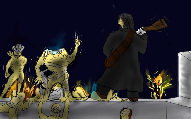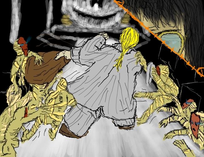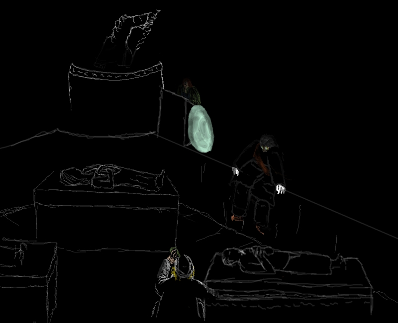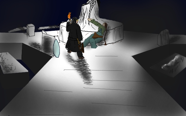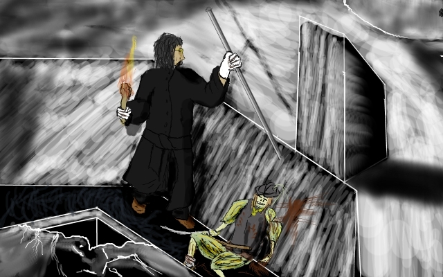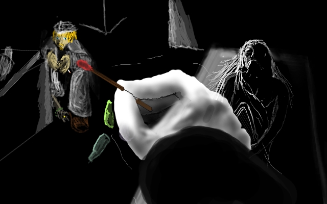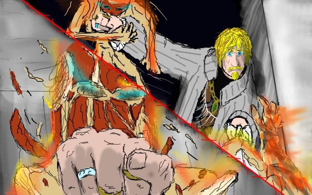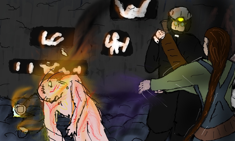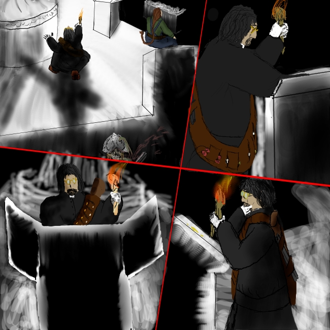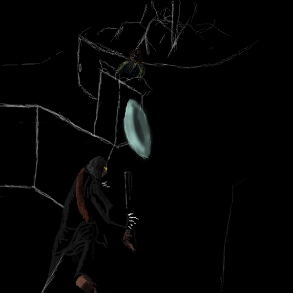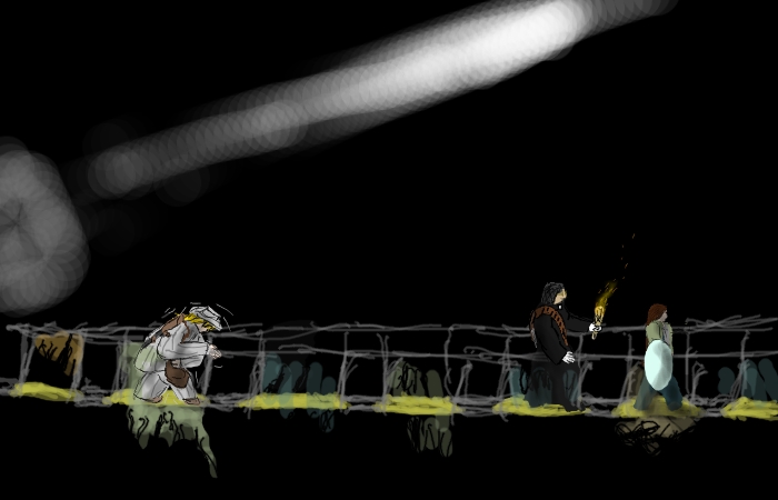 Yes, yes of course, I must help him. I pass Clara the torch and go back.