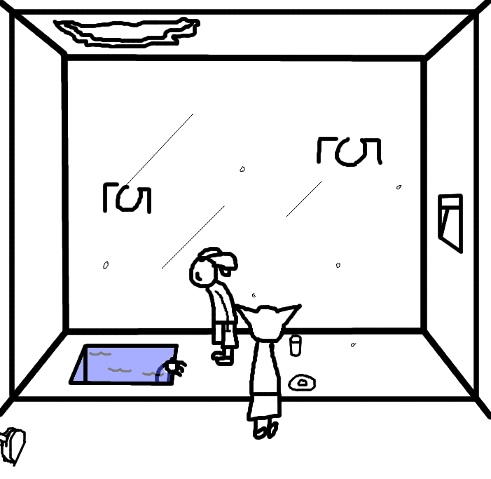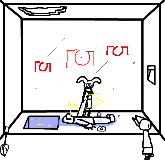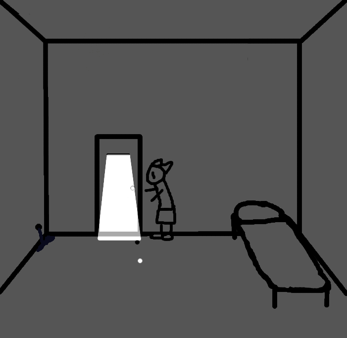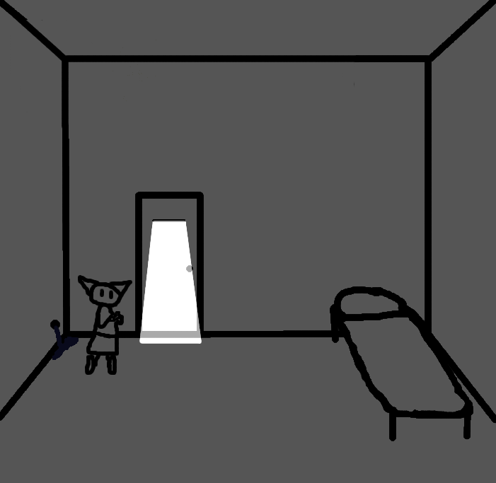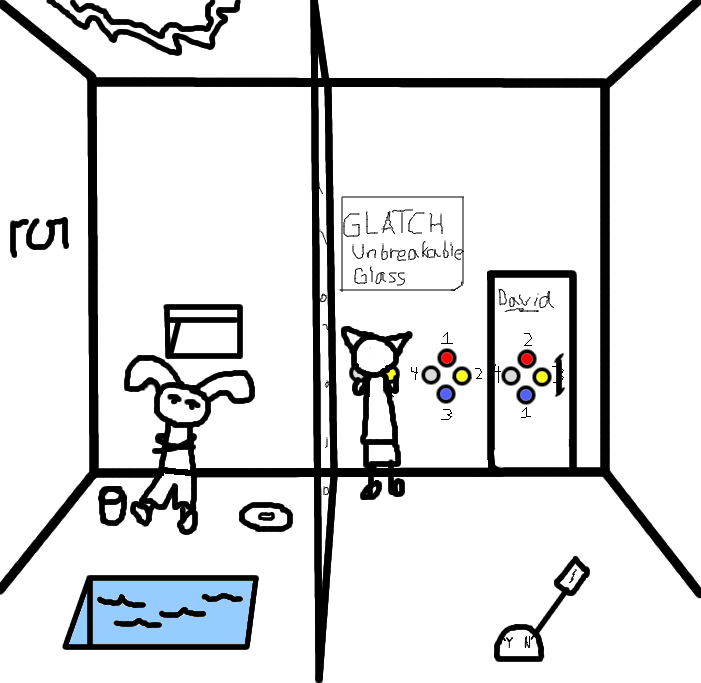 She tries both combinations. Then she tries other combinations, all at random, that don't work. Yellow, blue, gray, red; red, blue, gray, yellow; yellow, yellow, blue, blue, red, red, gray, gray. Nothing works. Meanwhile, the bunny guy there seems to be awakening.