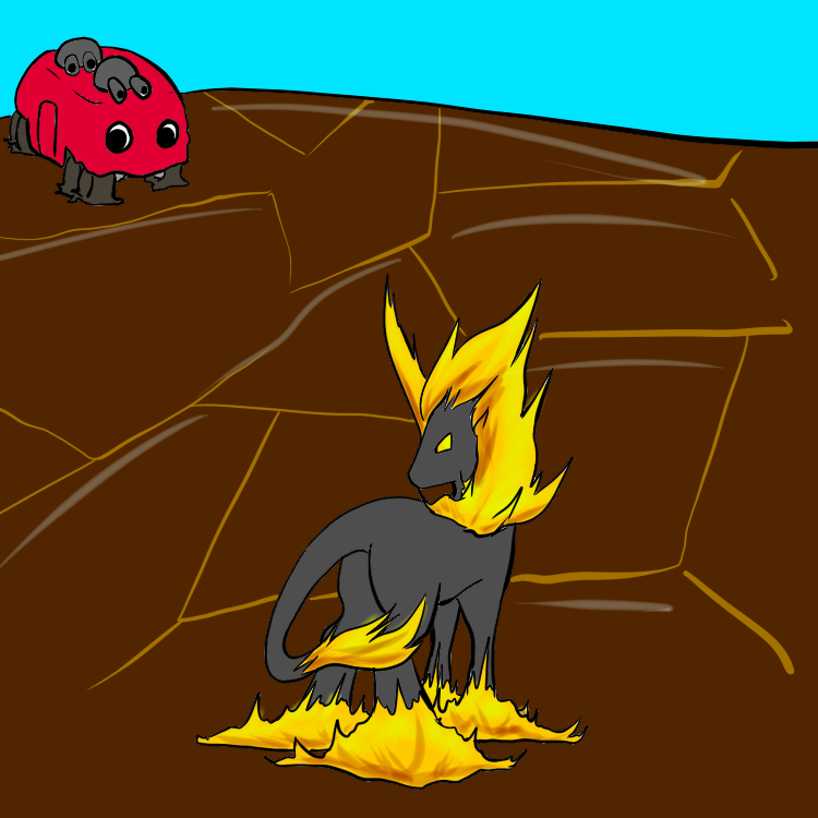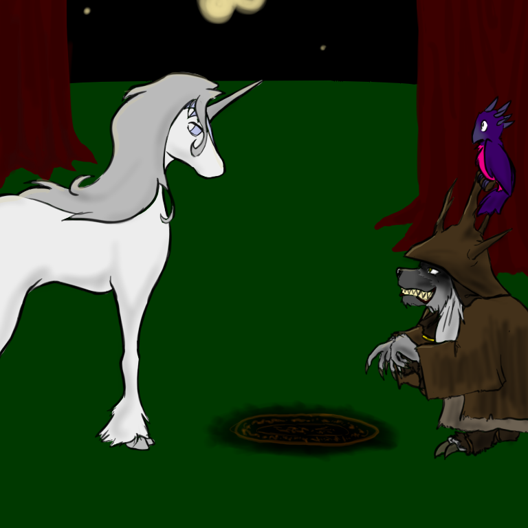 He appears to be satisfied, and leads me back down into the cave, into a dark room with no lighting except for a dimly glowing pool of multicolored ... sand?