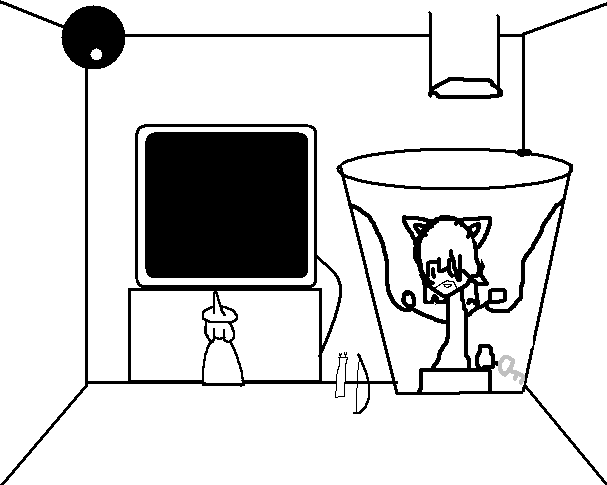 There is a computer here, a camera, a water pipe, and a fox girl in a glass tube with a Silver Key attached to a small air filled plastic baggie by her feet.
