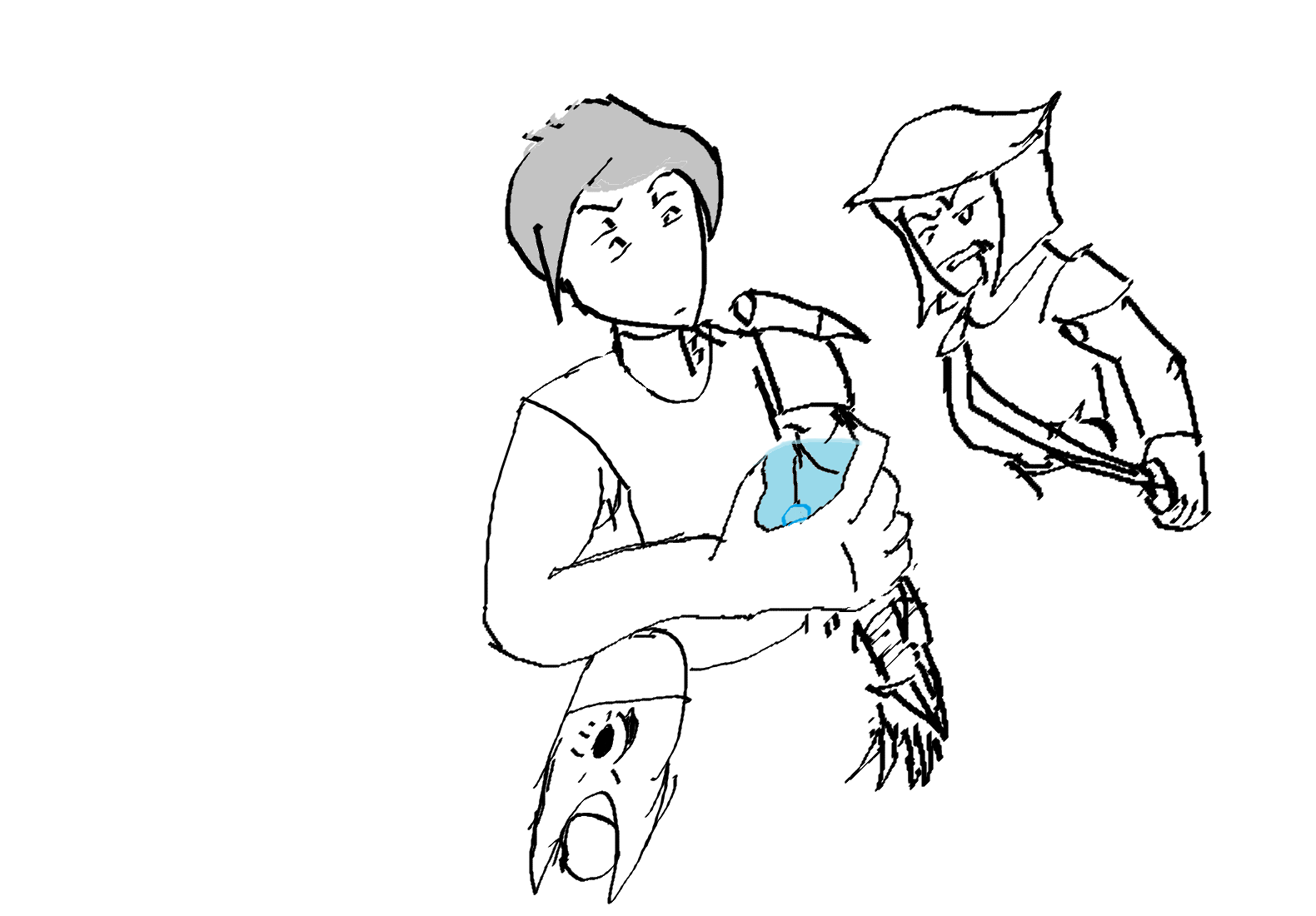 >Oh... I-I was hoping you wouldn't ask, but... I know I might not look it, sir, but I'm... kind of good at sneaking around. When I said I... hid, earlier, I didn't really tell you the whole truth. I did hide, but I got a little... greedy. Some of the bandits did get killed in their attack, so I kind of... liberated what money I could. I thought, it was a way to pay them back for killing everyone... and I thought maybe I could use the extra to help our farm. I know stealing is wrong, but I thought, 'They're bandits, so it's okay.'