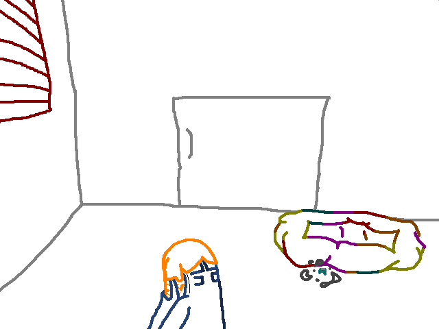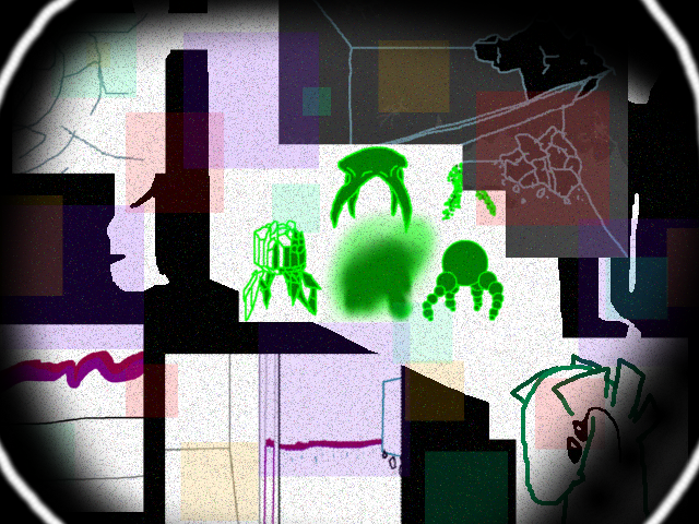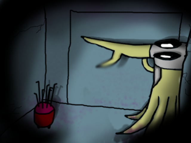 )This was one of the 'messy' rooms. They had to keep painting over the walls, since they would keep rather, artistic, people here. The kind who'd write or draw on anything they could lay eyes on, with anything they could lay hands on. When the facility shut down, they didn't bother cleaning up this room, aside from taking out furnishings and such.(He opens the door...