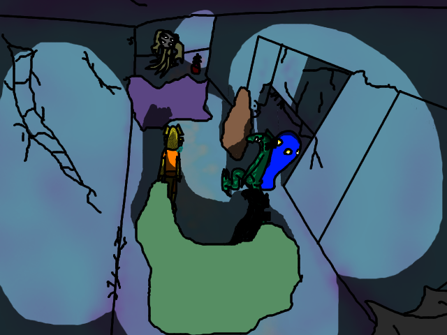 )We'd go there, but of course it's no longer very accessible. All the media there were electronic, and the people in charge kept track of who read what, to make sure there weren't any issues. That worked, excepting rare cases where the guests were a little bit wilier than the ones watching them. Notice, there are cracks in the walls we pass by. Many of those are from escape attempts, where the walls weren't quite fixed up right. You just can't always tell what someone's going to do... especially when you give them accessto information. Speaking of which, let's make our way to the other side of this room, and check out the rooms of the ones who were a little too rowdy for the rest.(They reach rooms where the doors are definitely intact. Zeeister stops in front of one, touching the door.