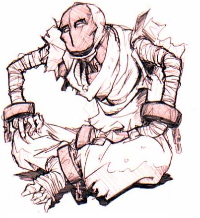 I step forth, and gently touch the sandlike skin of his huge arm.