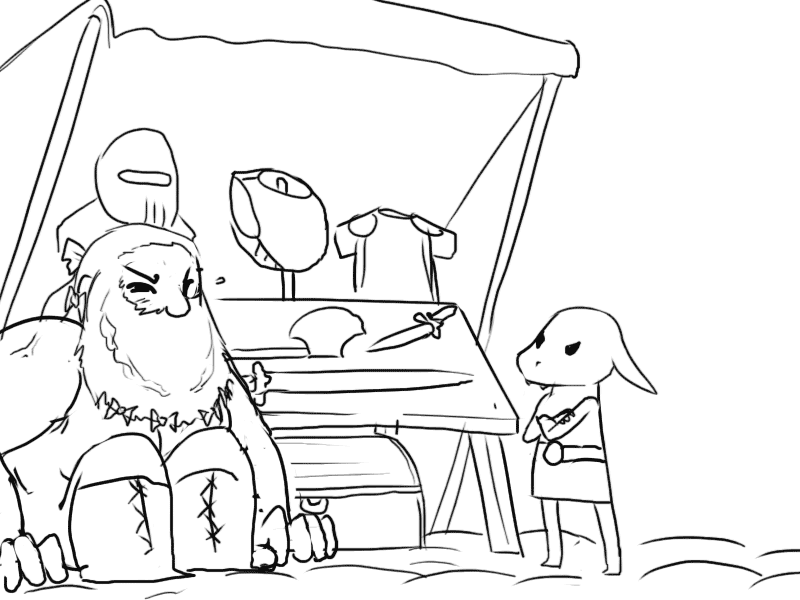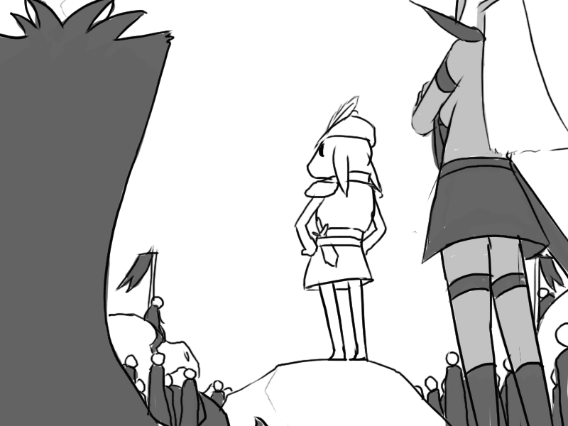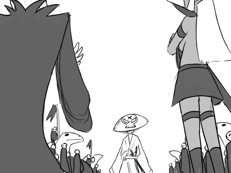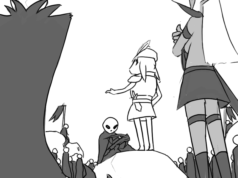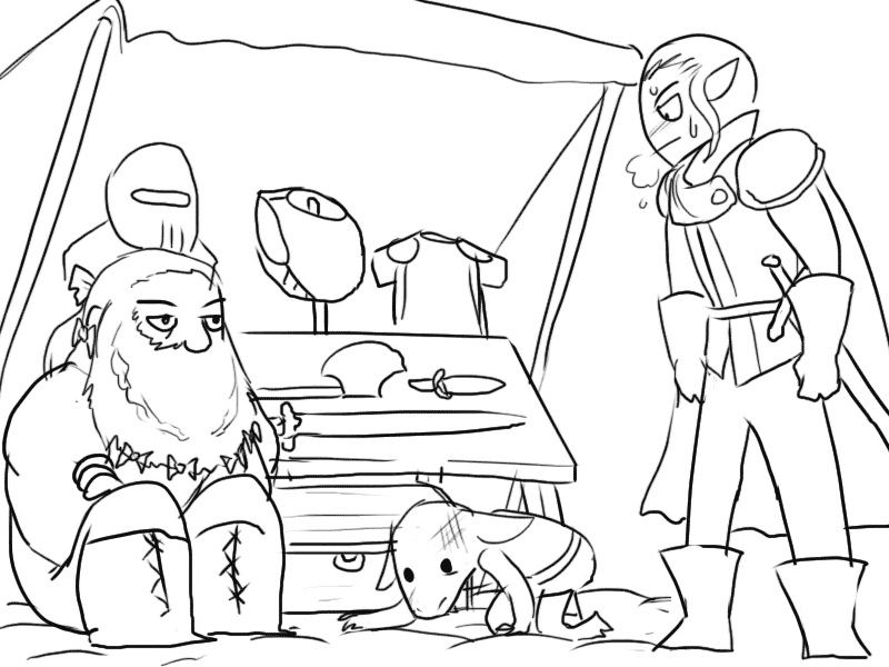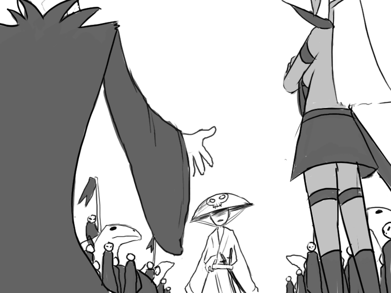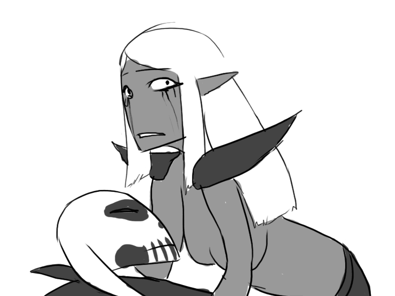 Seeing the effect it has, Mudy takes another breather. Raital's eyes remain fixed on him; cold but curious instead of fiercely hostile.