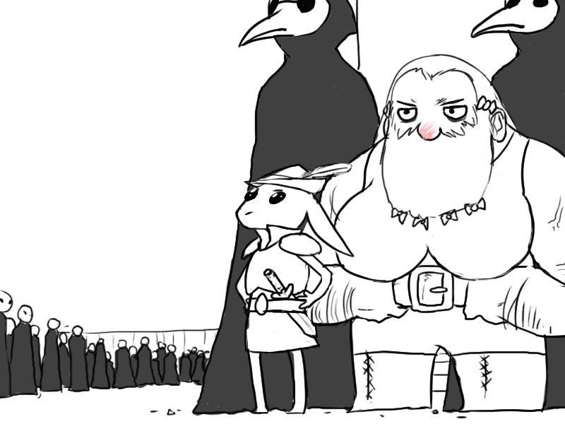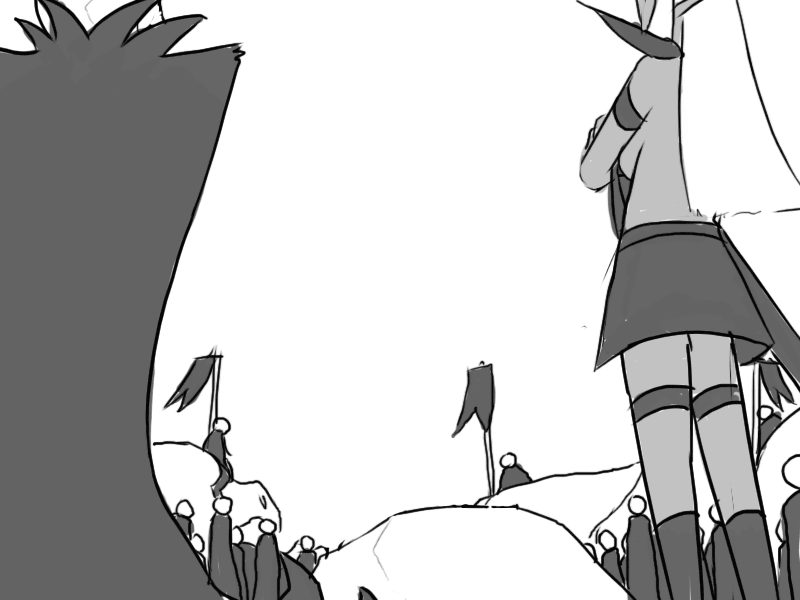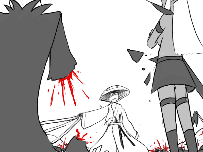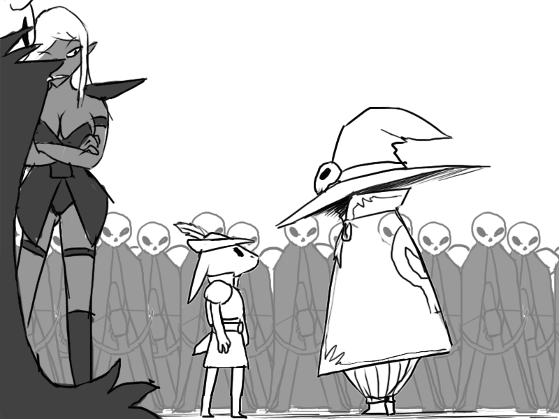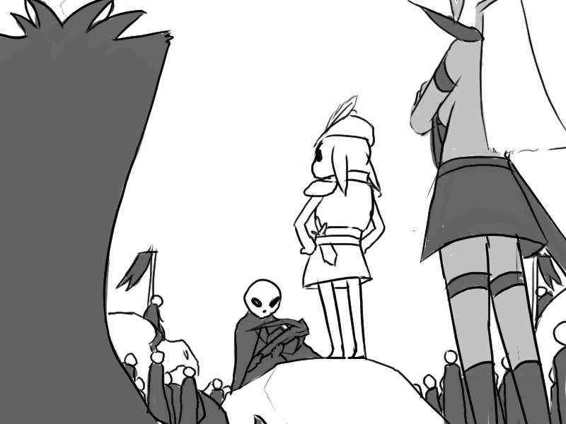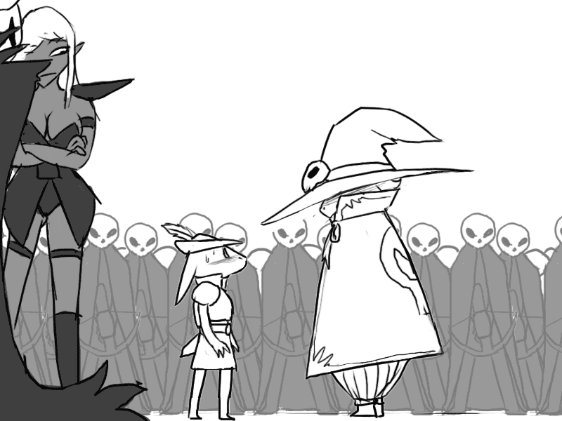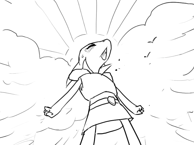 Seeing the effect it has, Mudy takes another breather. Raital's eyes remain fixed on him; cold but curious instead of fiercely hostile.