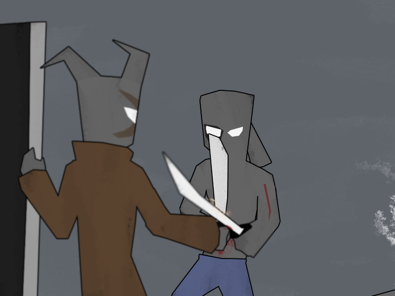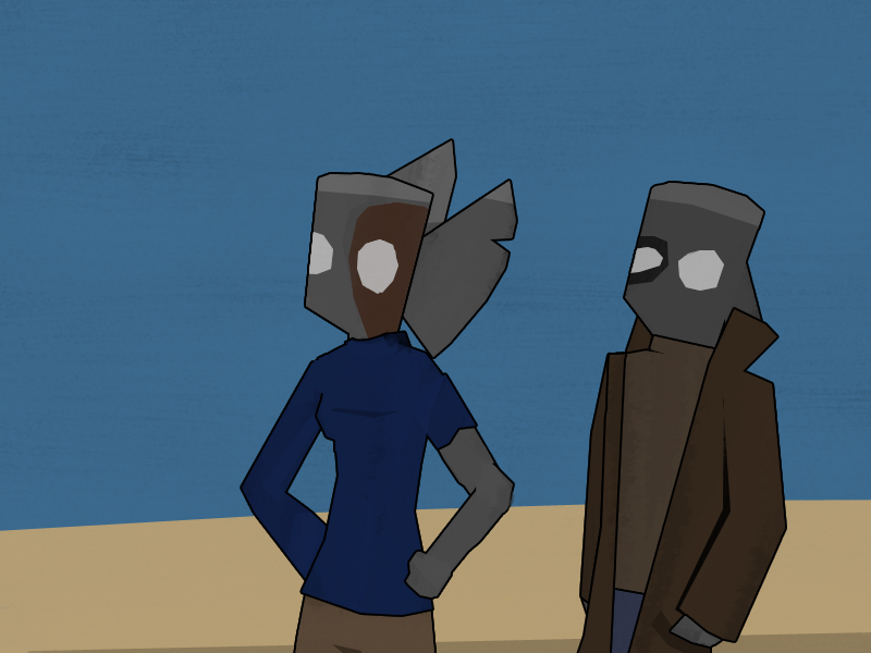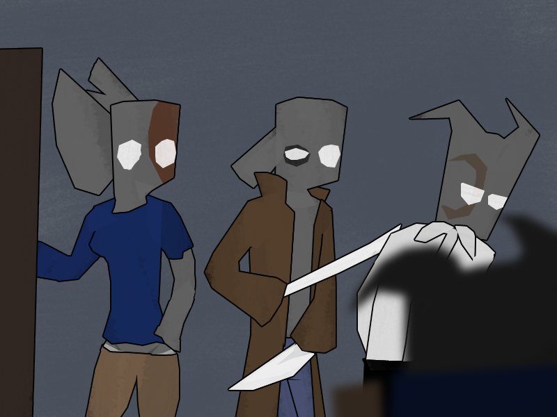 He cuffs them to each other, the furniture, and pretty much whatever else he can, and then he and Squires scout the building out.