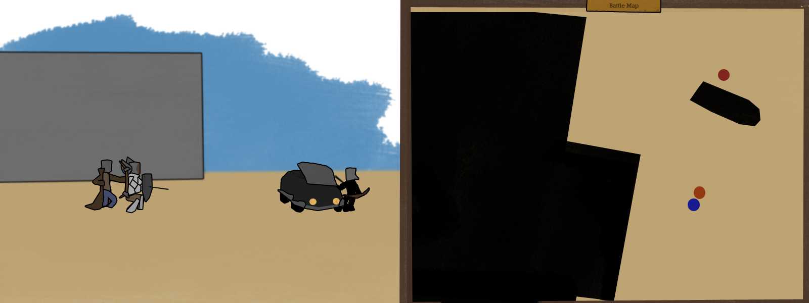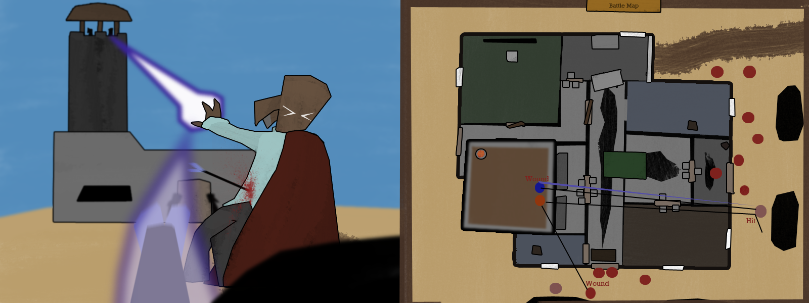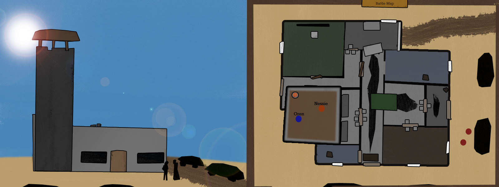 There's also three oil drums. Each one can, given five minutes, be used to make a siege cauldron to dump off the tower or a flaming arrow stand. Or given one minute a barrel can create an oil slick that Oren can set fire to with an arrow. There's enough oil in each barrel to create two small slicks (which can cover the entrance of a door or a hallway) or one large slick (which can turn a room into an inferno).