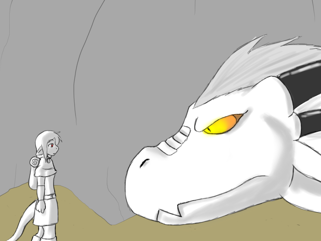 Also, on a more practical note, you don't seem to be actually fireproof, and I sincerely doubt that you can run faster than a gout of flame. Look at how Deep you are into her cave. Even if you were to sacrifice Jehral, which I doubt you'd even consider, you simply can't get out of sight before she can blast you, one way or another.