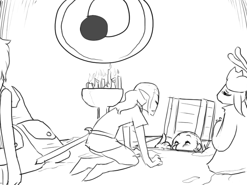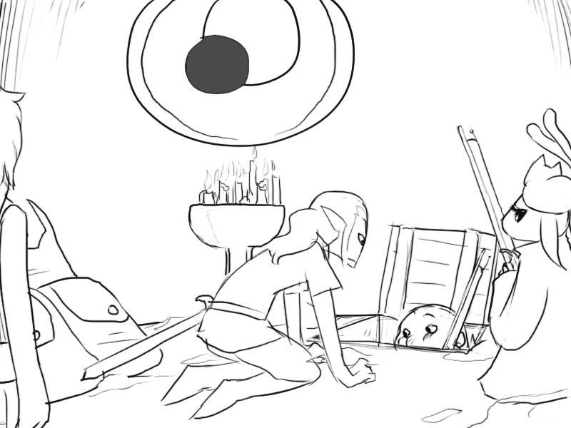 A moment of silence passes, before Mudy turns back to Axebeard, who is already busy inspecting her find.