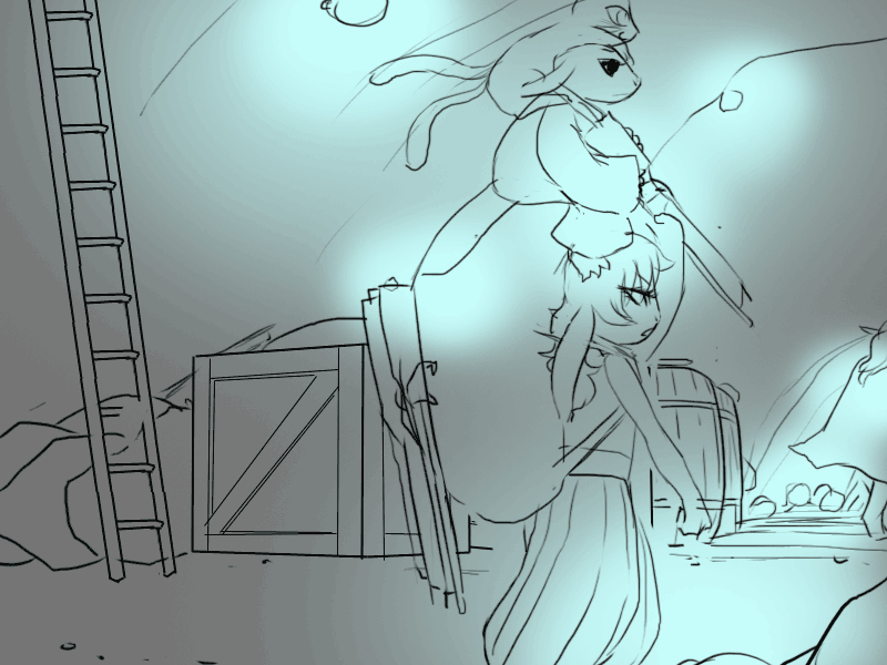>"Strange humancraft. There be a whole bunch o' 'em back 'ere, with barrels o' black powder 'n iron pellets everywhere."