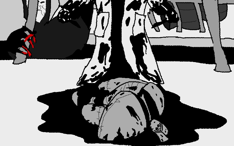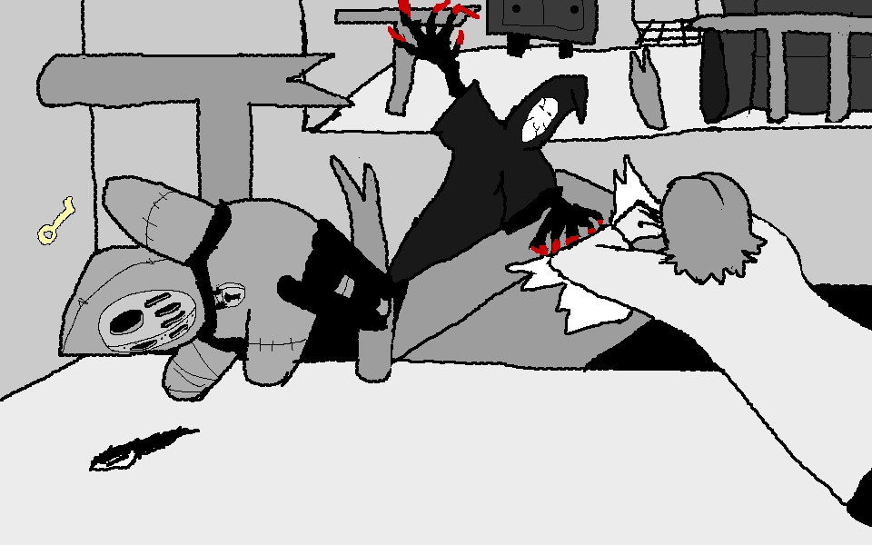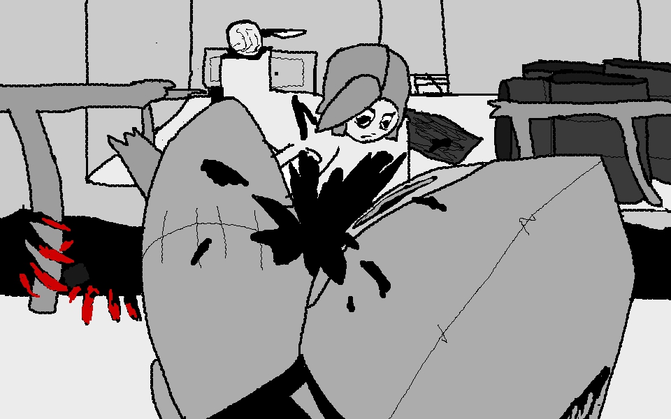 She jumps towards me and I throw the pack with all of my strenght. It bursts, momentary blinding her, but before I can react, I feel an unbearable pain running through my broken leg and fall to the floor.