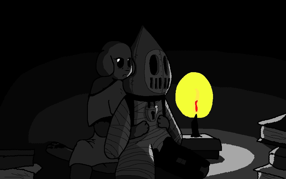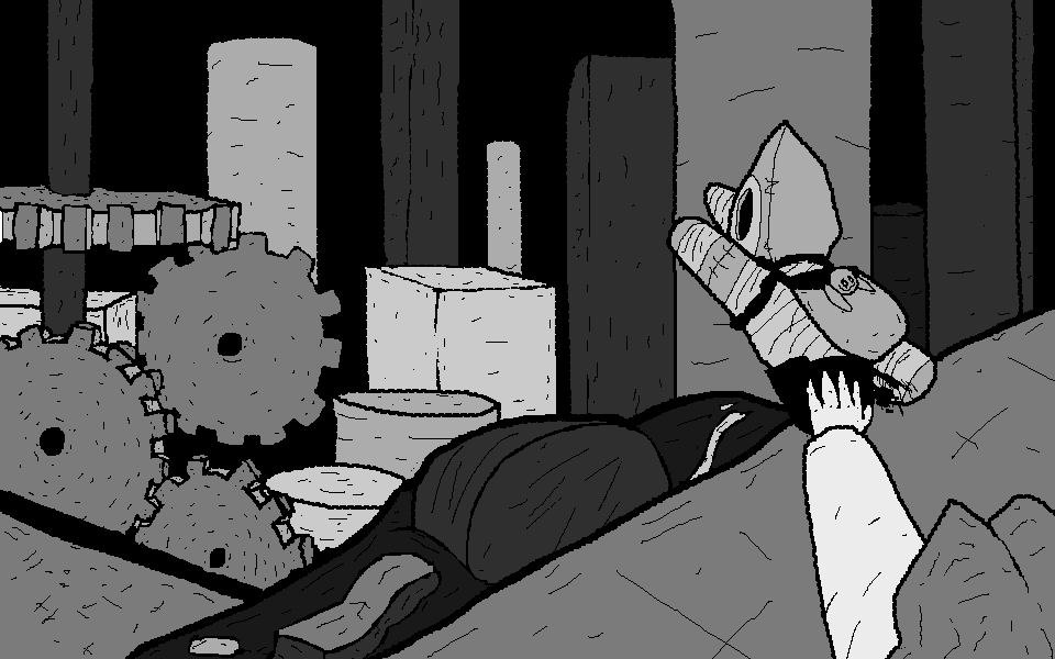 Suddenly she feels like she's being watched. The only things that move in the dark are the gears and the only things making a sound are the old rusty machines but Isabel still doesn't feel as if she's alone down here anymore. Maybe it would be best to just get away from this place.