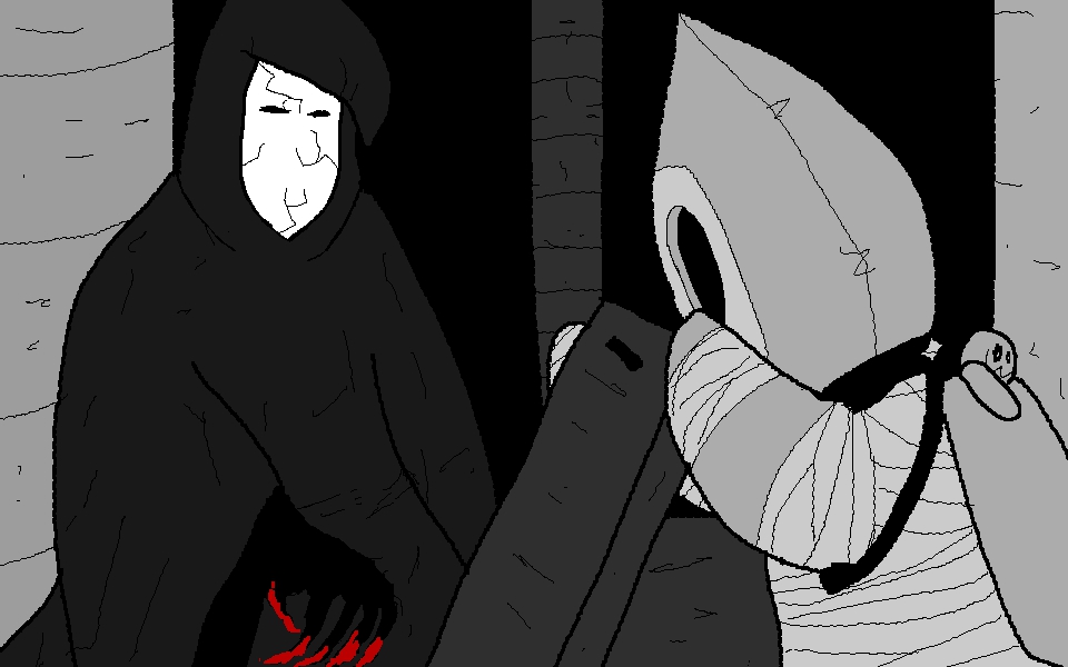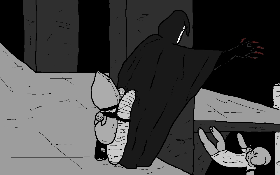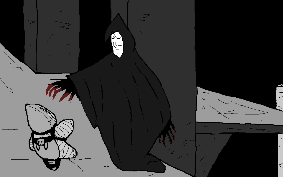 >"You might not have helped me although I would have given you something else in return. Something better. A painless death. If you just had listened to me, I would have already rewarded you. Now we'll have to do it the ugly way. But you can still be happy. You would have died anyway down here, considering the state you're in. Now at least I might profit from this turn of events. At least, it won't be a meaningless death."