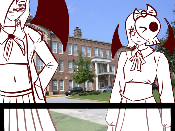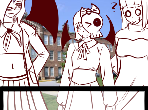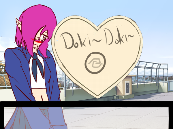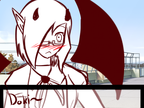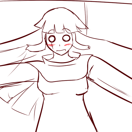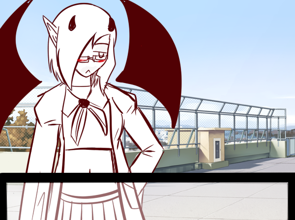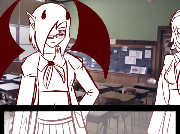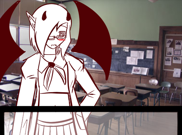 Still, we might as well give it a shot. Smile and speak teasingly. "Not everyone can be as charming as you, Meagan." Await response, then "Huh. That girl is staring at me. Who is she?" After getting a name go up to her, see what's on her notebook, and ask "Hey, (name), can I help you with something?"