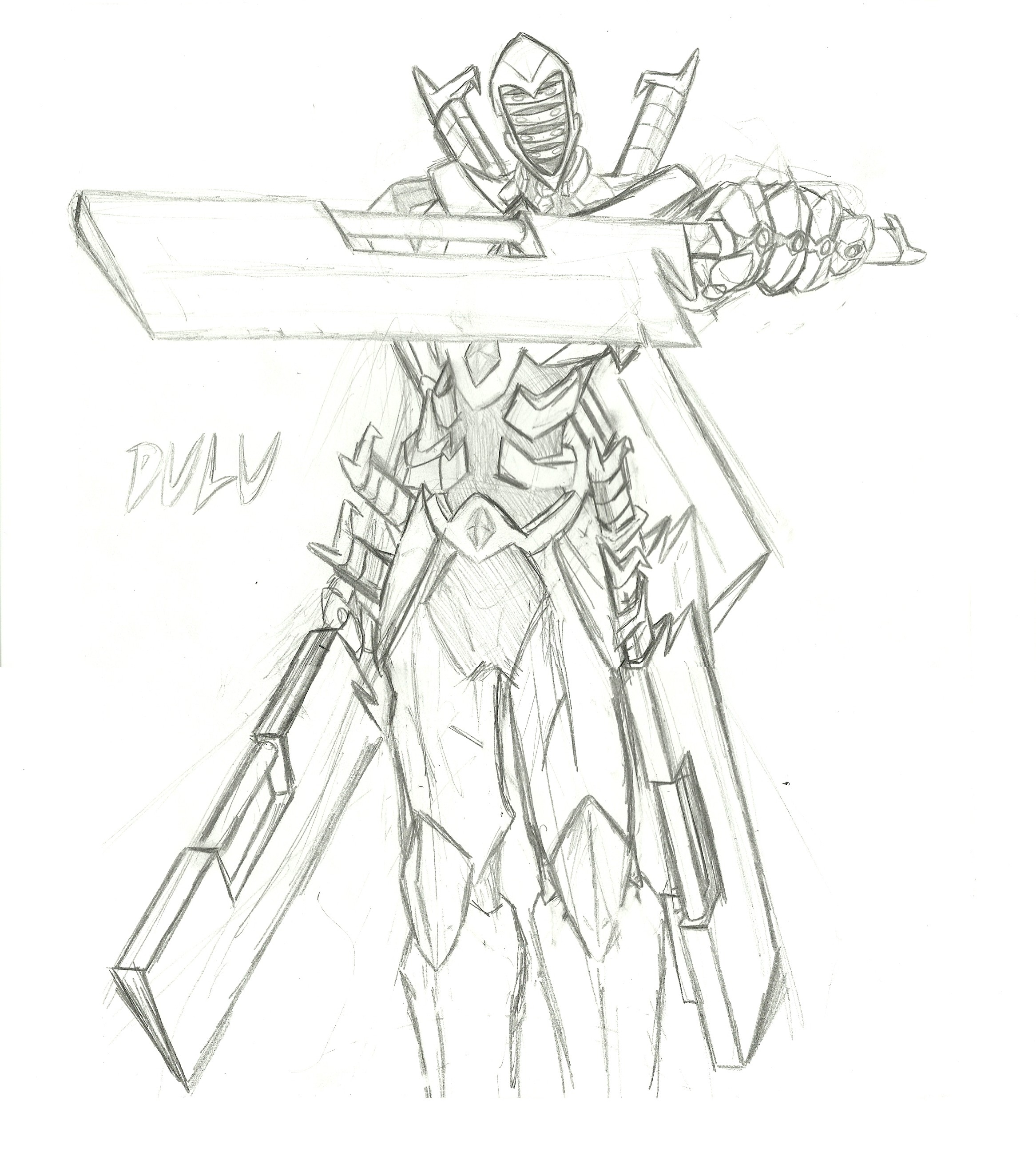 A sword shimmers into existence in it's hand, a blade that looks vaguely reminiscent of True Edge if swollen to immense proportions, a dark, pitted metal that seems only partly there.