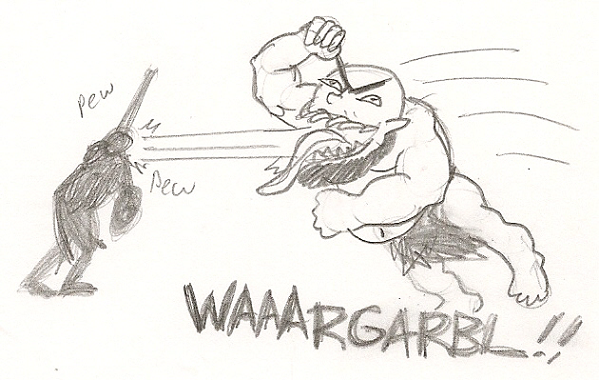 The deft moving of bodies, the tide of battle being read, the consummate strategist and tactician, working their hands as if to puppeteer the whole battlefield, their foes finding ruin even when initially certain of victory, their plans seen through. These are the thoughts that fill my mind this time, as I consider the moniker Sadronm, directing my Will to the act. The egg in question begins to unfold, rolling itself outward before falling to the ground, shriveling away as a vaguely amphibious, vaguely reptilian precursor slaved to humanoid shaping stands tall, a staff of carved bone, throbbing as clumps of ochre goo slips and slides about the staff, vibrating as the air flows by, clutched in the hands of this eleven foot tall fresh existence.