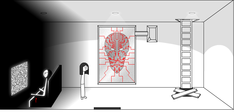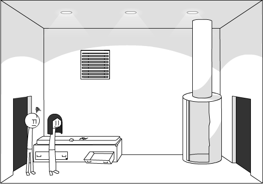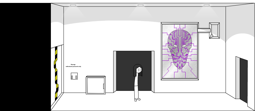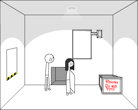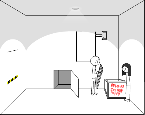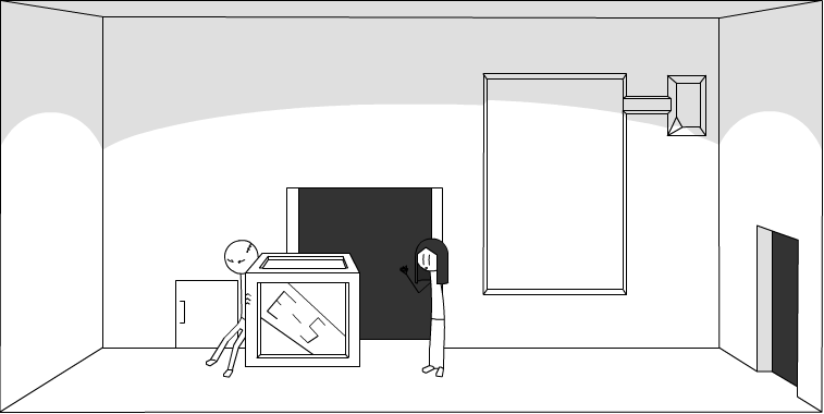 You climb back up into the airduct, and shout out to Jason, who, walks into the room.
