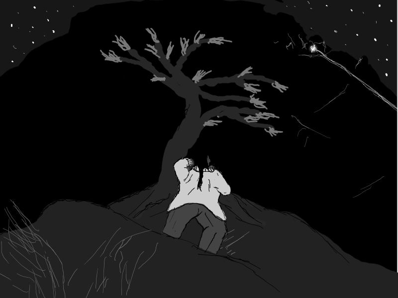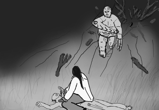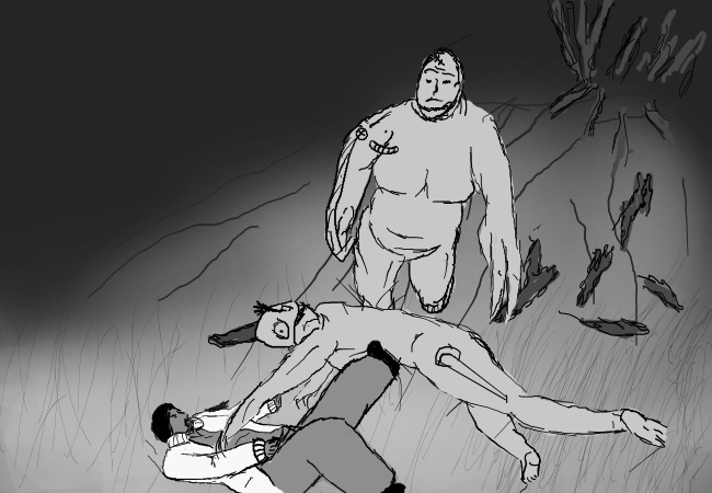 The smell of roasted meat, sweat, spoilt food, the sweet acrid smell of a still and something cloyingly thick like the smell of rotting roses if that makes any sense.