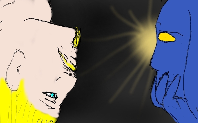 Too many sensations grate upon and assault my senses. I feel cool air over my body, a sense of vertigo, hear many strange voices, echoing, a wide space, a language that does not come easily to my tongue.