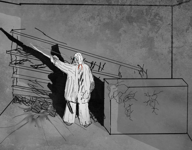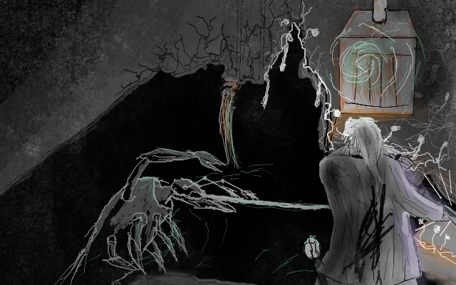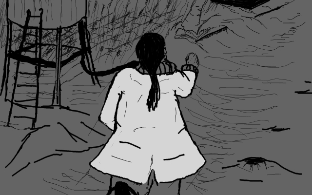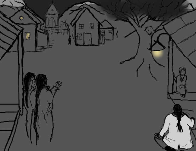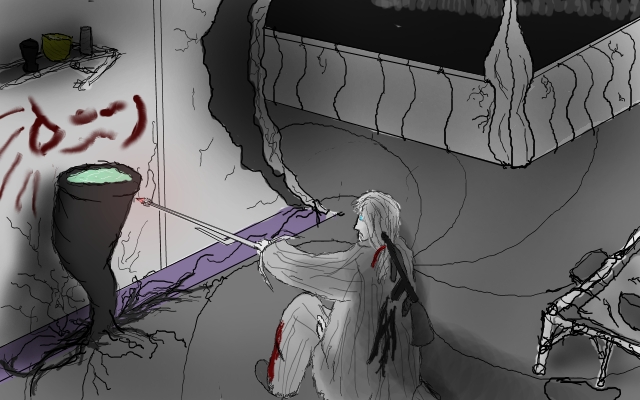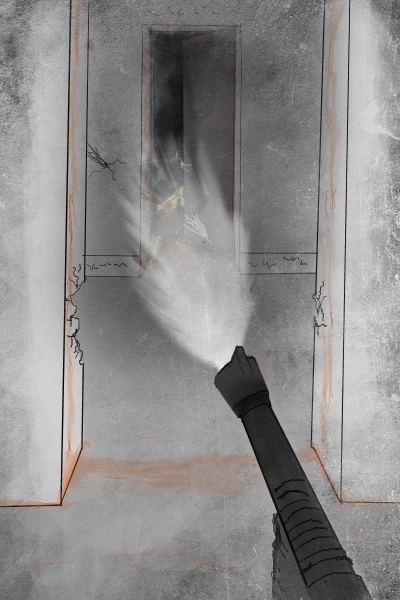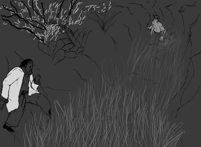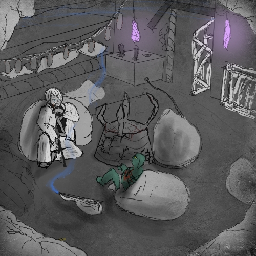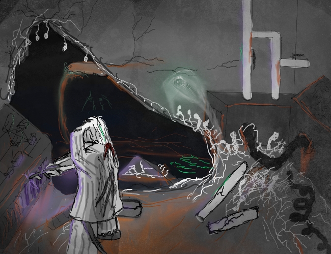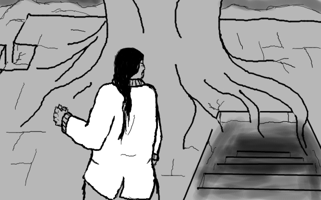 Wait, no, focus, yes have to get out! First must find a fortified place to sleep. Then if we could determine the rough direction of the "Eye to Eternity", and ascend stairwell, perhaps take the way out that preacher came in?