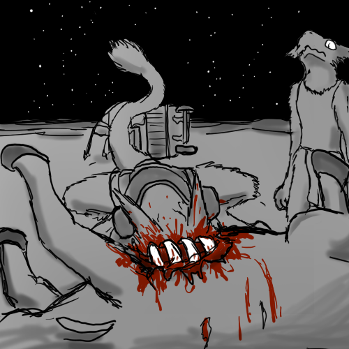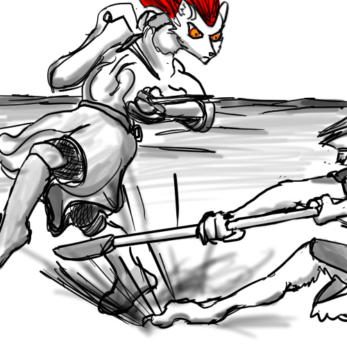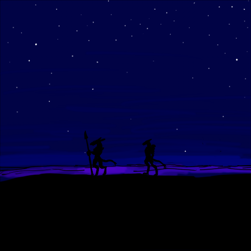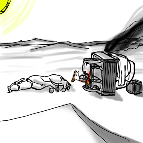 "Not long after we were out of sight of the others, she killed my mule, pushed my cart over, beat the shit out of me, tied a a wire to my collar, and tied that to a stake she hammered under the sand, so I was stuck on my back. Then she rigged up the whiskey to dribble into the fire to make smoke, and hid. A pair of Northerners found me later that day. Shadran burst from the sand and cut them down in moments. I don't know where she dragged them off to. When I saw you, I thought you were about to die... I'm... so glad you didn't."
