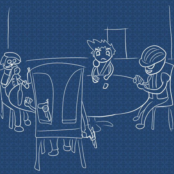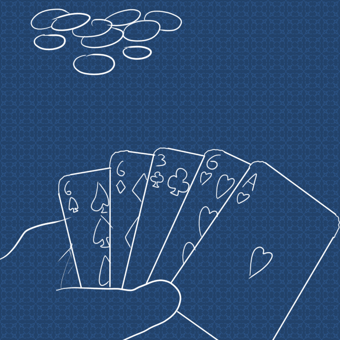I throw down my cards, letting the Ace and Seven of Diamonds I just got fall to the wayside.