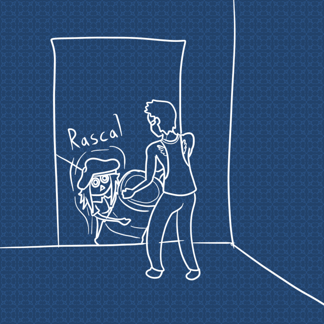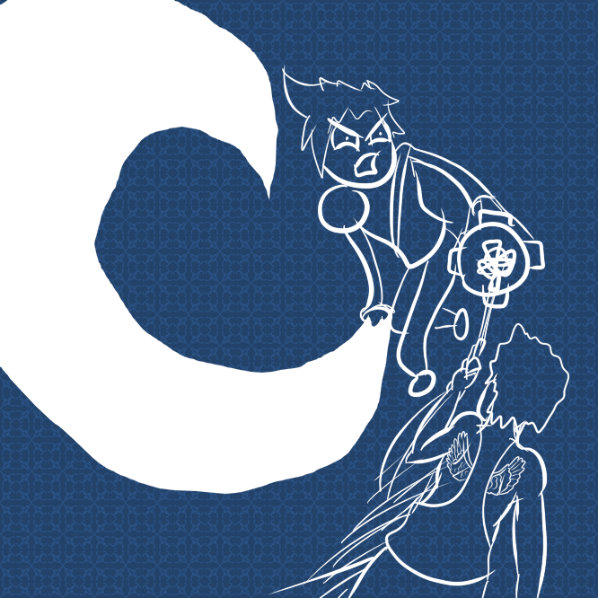 Bedlam is a mercenary. He's very grumpy because his little sister is out in the city somewhere, and he really wants to go find her. I can't blame him for being so antsy most of the time.