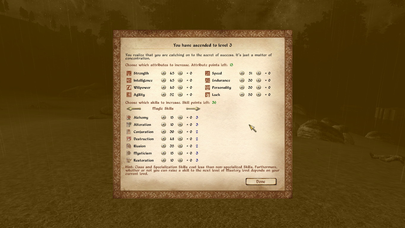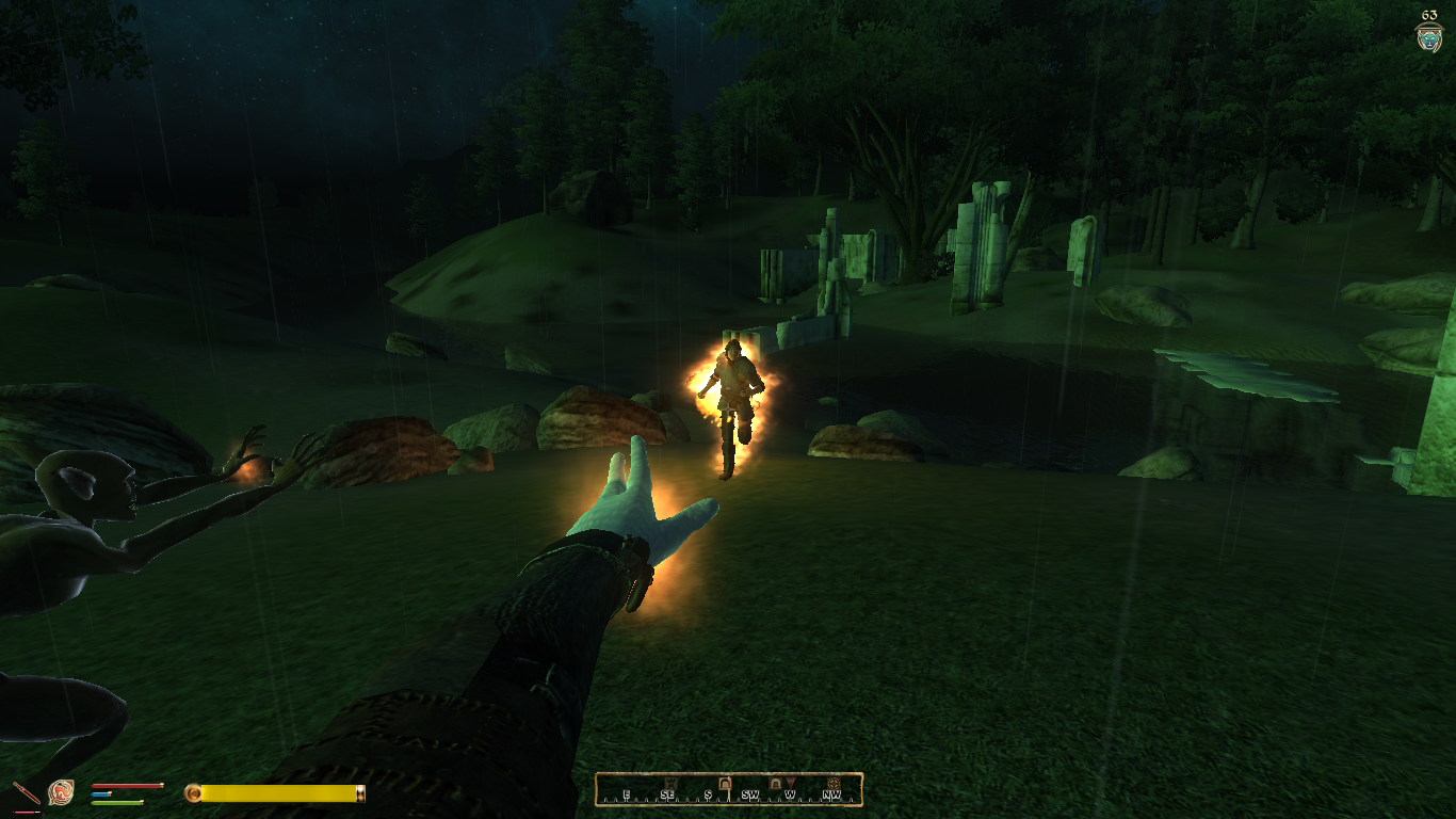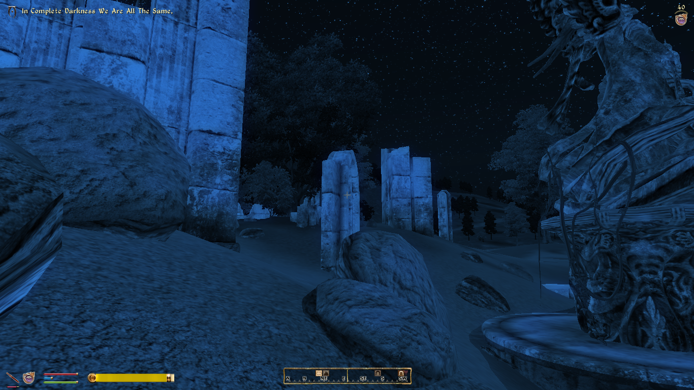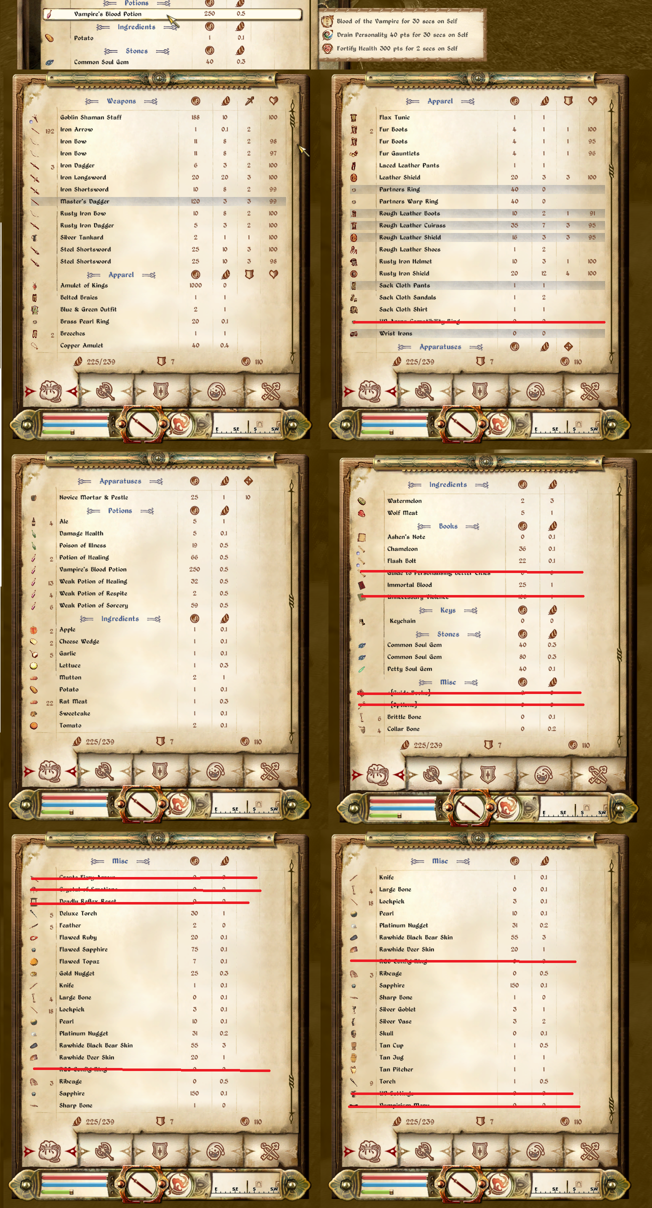 Sorry for long delay, trouble at work. Anyway, image includes entire inventory. Items crossed with red lines are items used for mod management (facial expression changers, fire-arrow generator, etc). They don't exist ICly, with the only exception being the Parnter's Rings, because they've already been mentioned ICly.