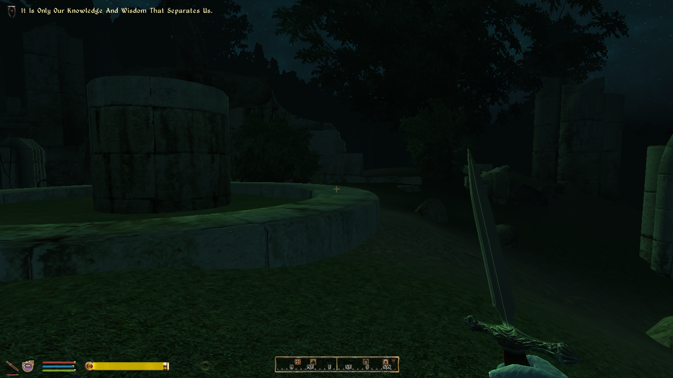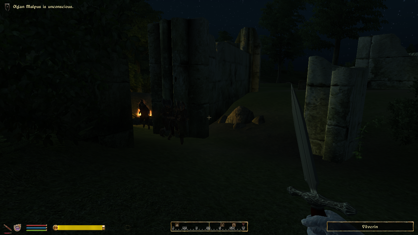 Looking around, and seeing nothing else of interest, you proceed to the looting! The bandit's corpses hold little of interest; there is a plentiful number of daggers, bows, arrows, fur armour, a few coins, and the occasional lockpick. One of the bandits appears to have been carrying a watermelon around, for whatever reason.
