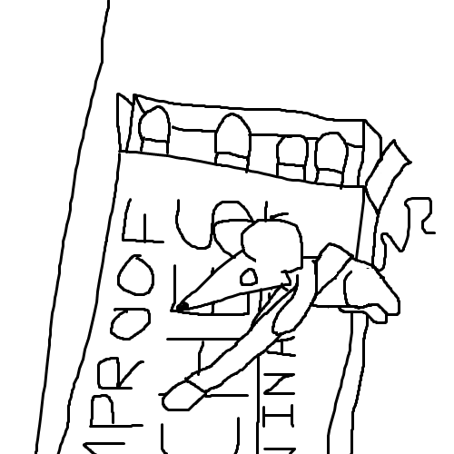 We retrace our steps to the mousehole. As we approach, a rat steps halfway out.