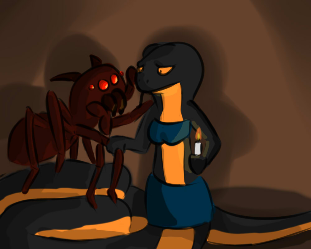 The naga discovered that she was the last of the demons to arrive, and found herself being glared at by the seven creatures sitting around the table. A small quadrupedal mammal with an inconsistent number of legs sitting to Scalene's left finally broke the silence her appearance seemed to have caused.