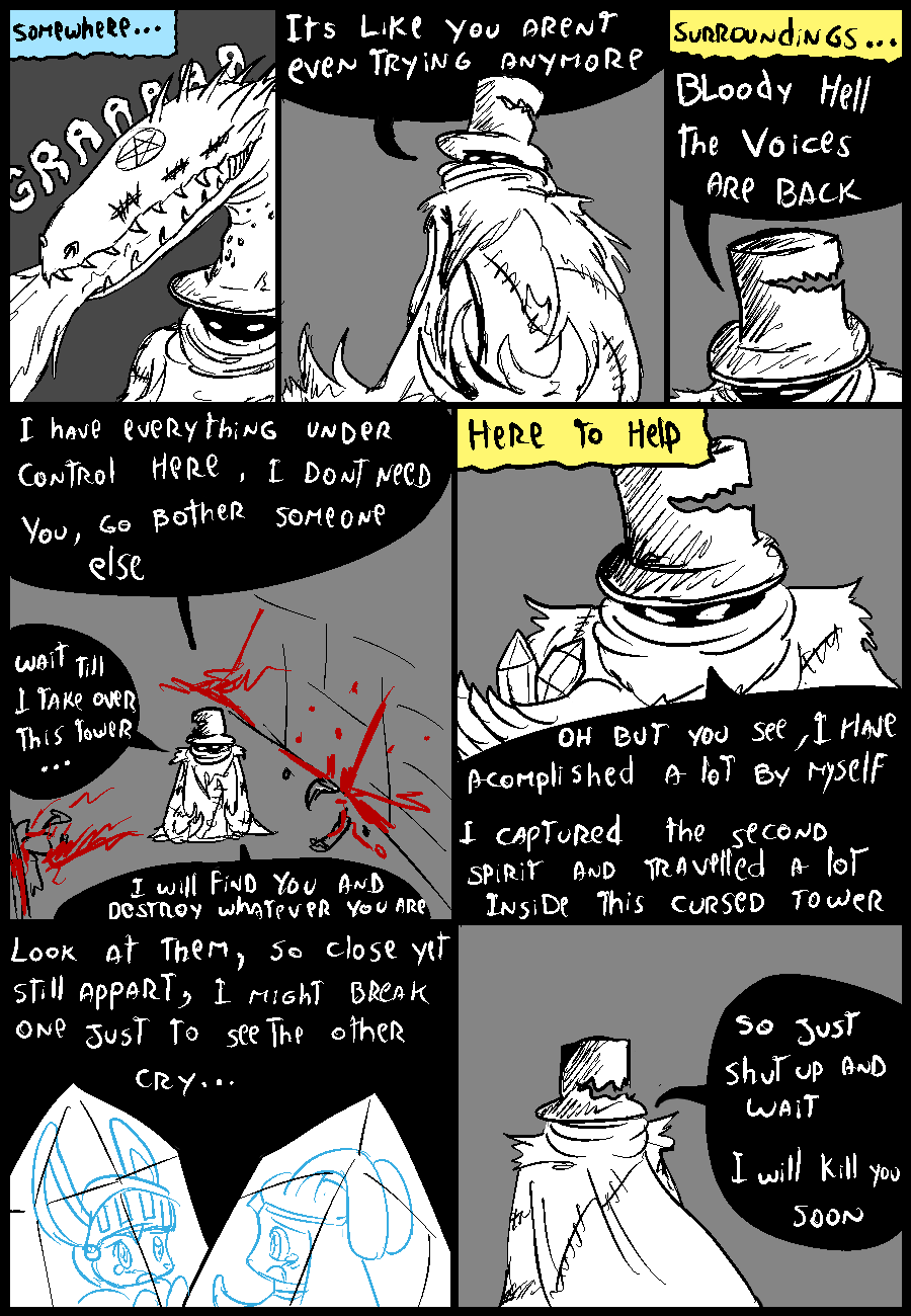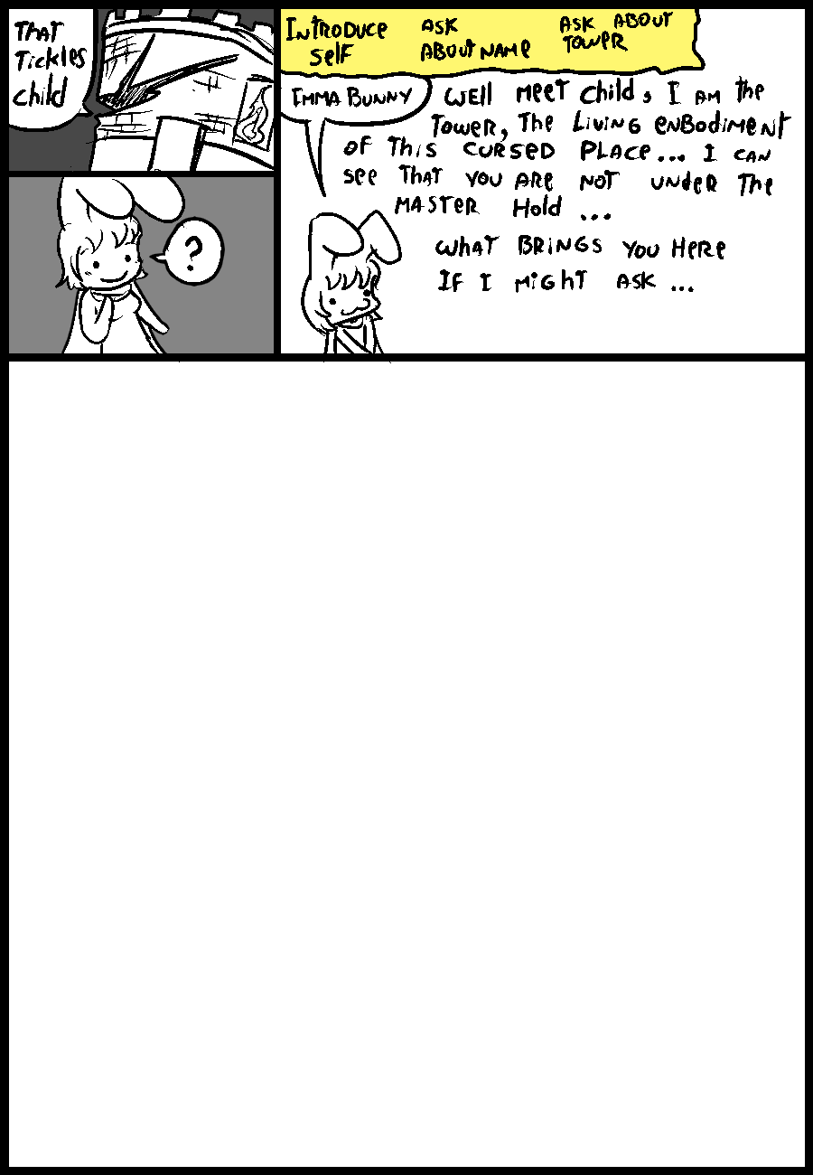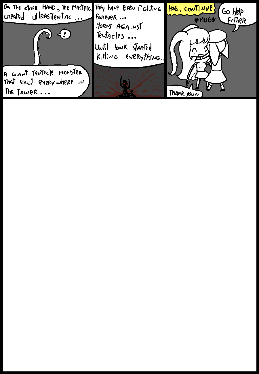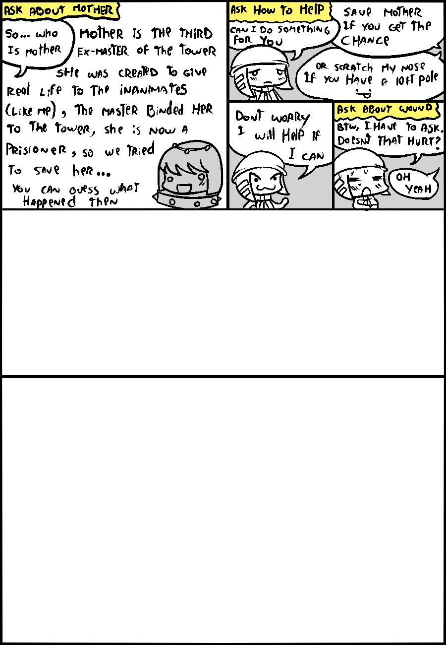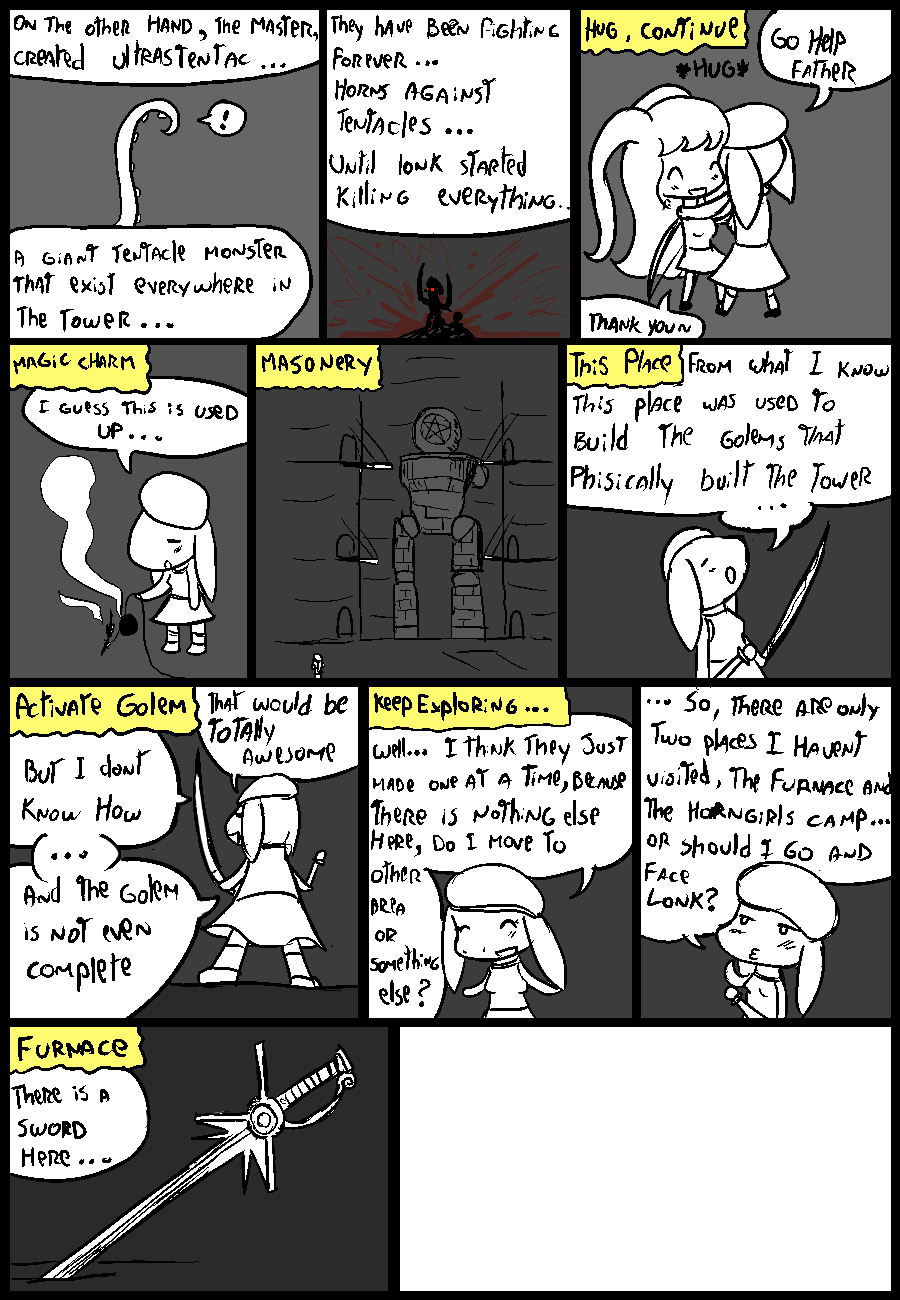 thanks for the exposition. us voices met the great golem king. he told us that with his death the tower would weaken, he gave the bunny girl the golem powers. and then when she left, he died, glad that he could do something to help. father probably wants to die too, to weaken the tower as well, but can't until he is sure his children are safe.