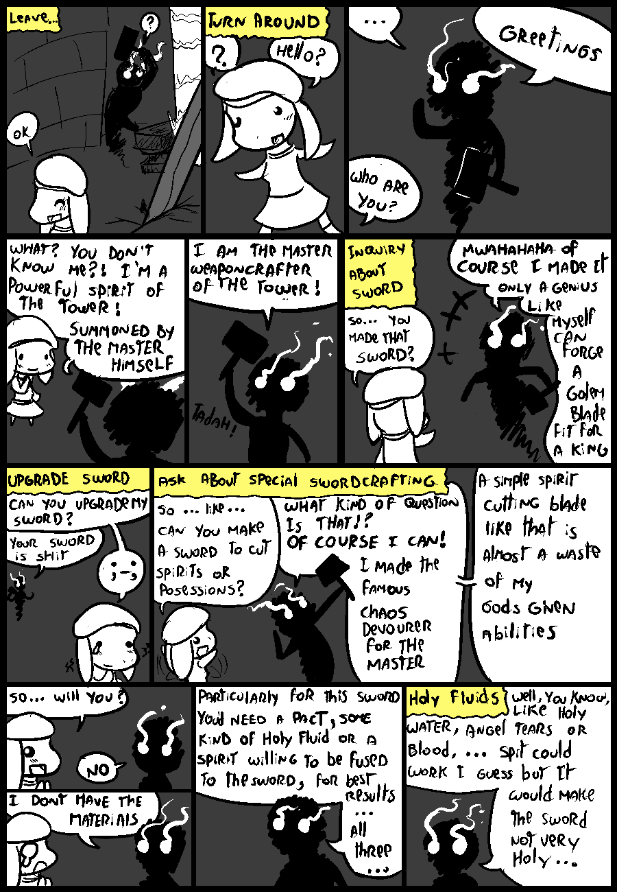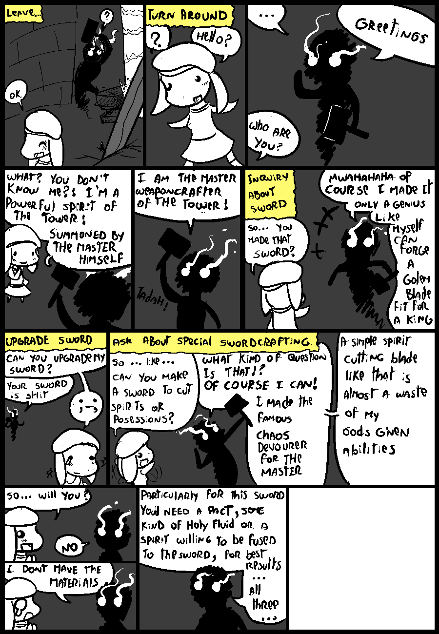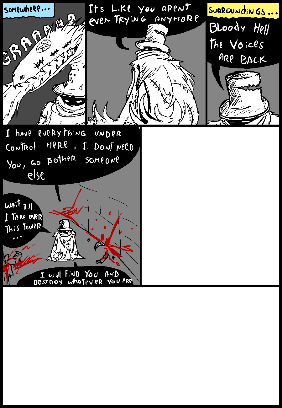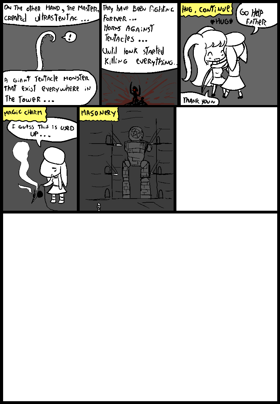 thanks for the exposition. us voices met the great golem king. he told us that with his death the tower would weaken, he gave the bunny girl the golem powers. and then when she left, he died, glad that he could do something to help. father probably wants to die too, to weaken the tower as well, but can't until he is sure his children are safe.