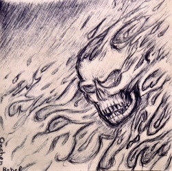 As Oz speaks, I see Bagrom sagging to his knees, hands at his sides, twisted and broken in some sort of recoil from, body twitching as the cords once anchored in those floating fists rebound and recoil into him, blood rising as they pass through his flesh, their passage rotting the skin away. But though he grits his teeth, the warrior says nothing staring at Oz as if at a god, his very stare, so full of supplication, seems to imply genuflection with naught aid but slumped, slack shoulders. Oz stumbles on in his rant, determined to carry his thought through, as if in defiance of his now infernal level of inebriation.