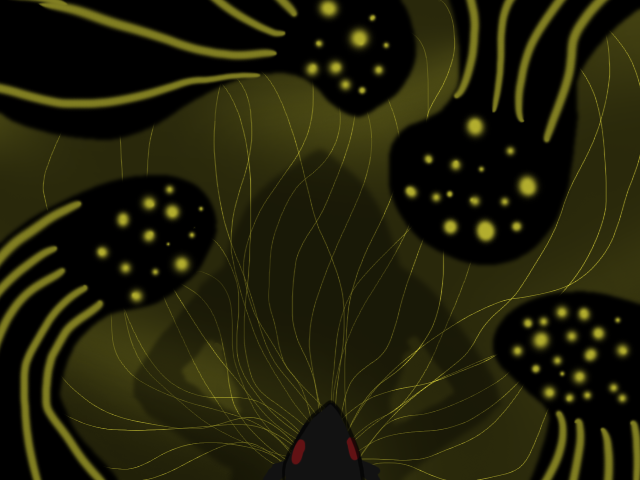 With alarming speed, Deba97t leaps away from Tene157ot, and vanishes around a corner. Kata22ti feels Tene157ot's past bewilderment, confusion, and... regret. A sense of failure. Despair. Anger towards the monitors. Doubt. Crushing doubt. How can he hope to change anything if he can't even keep a small group safe and together?