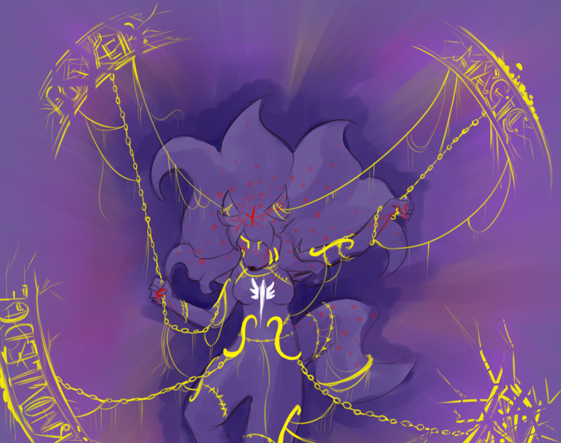 -Her form draped with chains, not bound, but loose, the chains are hers, she is not the chains, pull and hold, chaos in the links. Remember You are and were Fire Claw, a Gnoll, but NOW You are the Mistress of Fire and Chains, AWAKEN!-